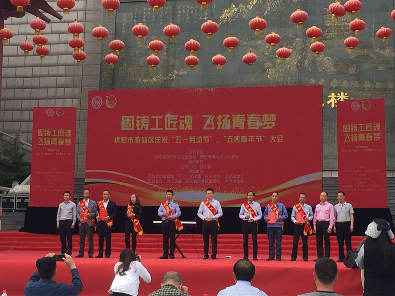 4月27日下午3點,綿陽市游仙區(qū)慶?!拔逡粍趧庸?jié)”、“五四青年節(jié)”大會在越王樓廣場舉行。我公司新材料研發(fā)部部長黃杰榮獲綿陽市游仙區(qū)2017年“工人先鋒”稱號,并在本次大會上受到表彰。